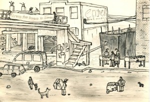 on a set of 7’x5′ index cards, I made a series of postcards about life in Bolivia. Everything here is something I saw, although the details are composite.