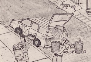 - In the mornings you can watch small flocks of pigeons following around the taxis that deliver bread to the stores.