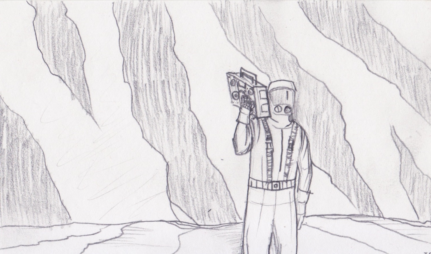 This fellow and his boombox are part of a poster design that I was working on ages ago. This is a very rough draft, and, with any luck, the finished product will look very, very different.