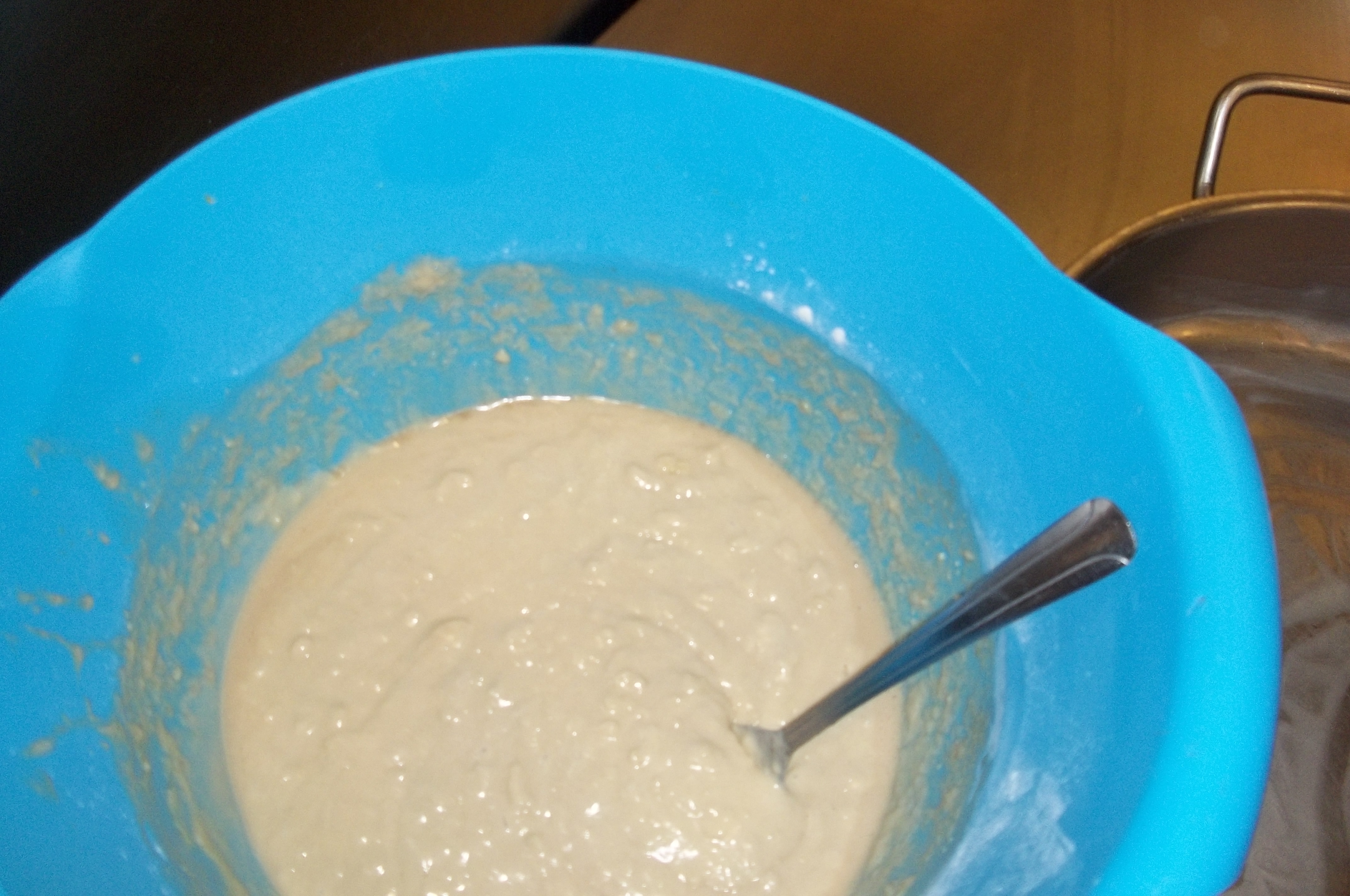 This is were things went off the rails, I think. The advantage of a dry leavener, like baking soda, is that it doesn’t release all it’s CO2 in one go. Double acting baking powder even has a time delayed second stage. Root beer, though only has one stage, and it starts going the moment you pull the tab. If your proteins aren’t in place, you’ll never have a fluffy consistency.